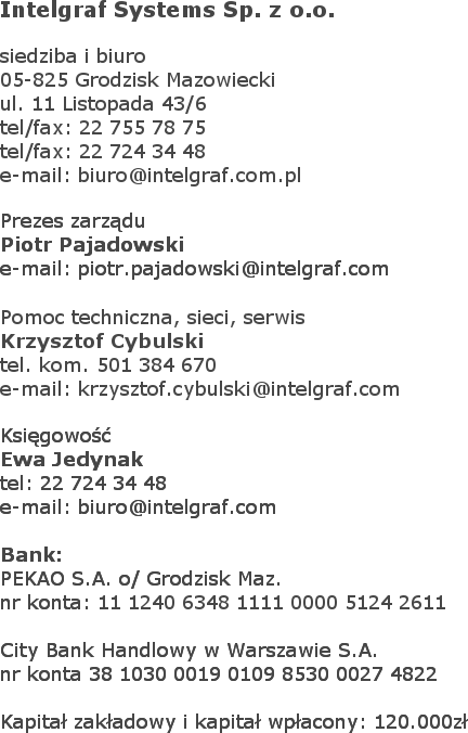 Zachęcamy do zapoznania się z pełną ofertą Intelgraf Systems, zapraszamy do współpracy!